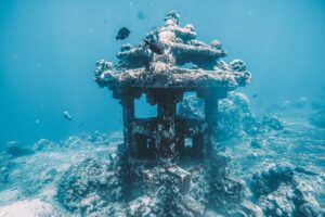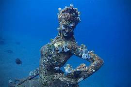 The bay began to be explored in the 1980s. Projects to expand the natural reef were launched. The mermaid statues “Apsara’s” were sunken in 2013 under the project “Living sea” sculptures on the left side of the bay. In the center some concrete structures. You will also find around a Barong figure (on the right side of the sandy slope). The artists were Wayan Winten and Eddi Prabandono. The sites are truly ideal for all types of activities, from macro photography to diving courses. You’ll find treasures here thanks to the diversity of marine life.