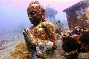 Coral nursery projects aimed at expanding coral reefs have been underway along the coastline since the 1980s. These two dive sites are a fine example of preservation and conservation by the local community, with coral gardens in the form of statues and concrete structures promoting coral growth.