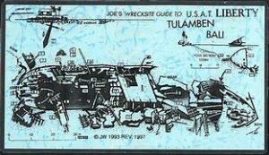 Liberty was launched on 19 June 1918 by the Federal Shipbuilding Company in Kearny New Jersey.  Acquired by the United States Navy as animal transport cargo ship for the World War I [USS Liberty (ID-3461)]. In November 1940, Liberty was one of ten ships taken up by the Unites States Army for defense service during the World War II. Renamed U.S.A.T Liberty for United States Army Transport Liberty. In January 1942, she was in route from Australia to the Philippines with a cargo of railway parts and rubber when she was torpedoed by a Japanese submarine [I-66] south of the Lombok Strait. Two destroyers took her in tow attempting to reach the Celukan Bawang Harbour in Singaraja but as the ship was too damaged they decided to beach her in the north-eastern coast. The Mount Agung eruption from 1963 has led the ship to slip off the beach. She now lies on a sandy slope in a depth of between 4 & 30 meters.