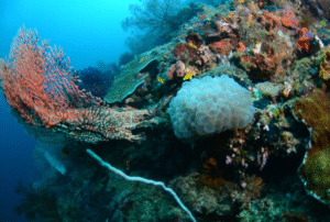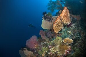 TOPOGRAPHY: Coral wall – Sandy slope – Giant barrel sponges
